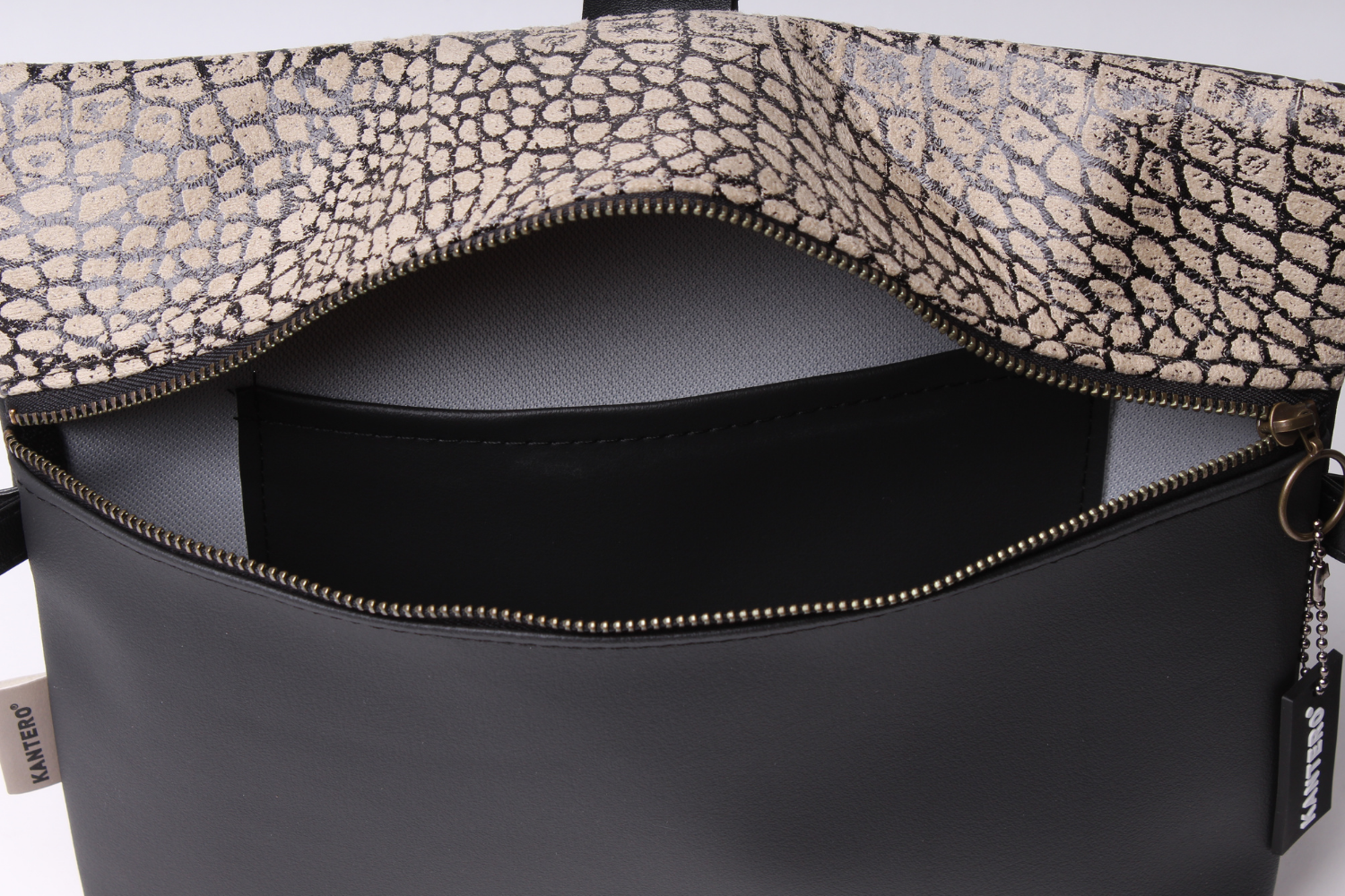 ישנה אפשרות לנעול בקלות את התיק עם חיבור בין הקליפס של הרצועה לטבעת הרוכסן