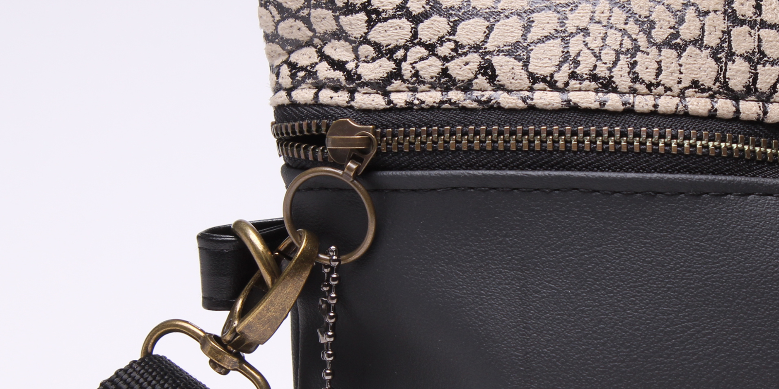 ישנה אפשרות לנעול בקלות את התיק עם חיבור בין הקליפס של הרצועה לטבעת הרוכסן
